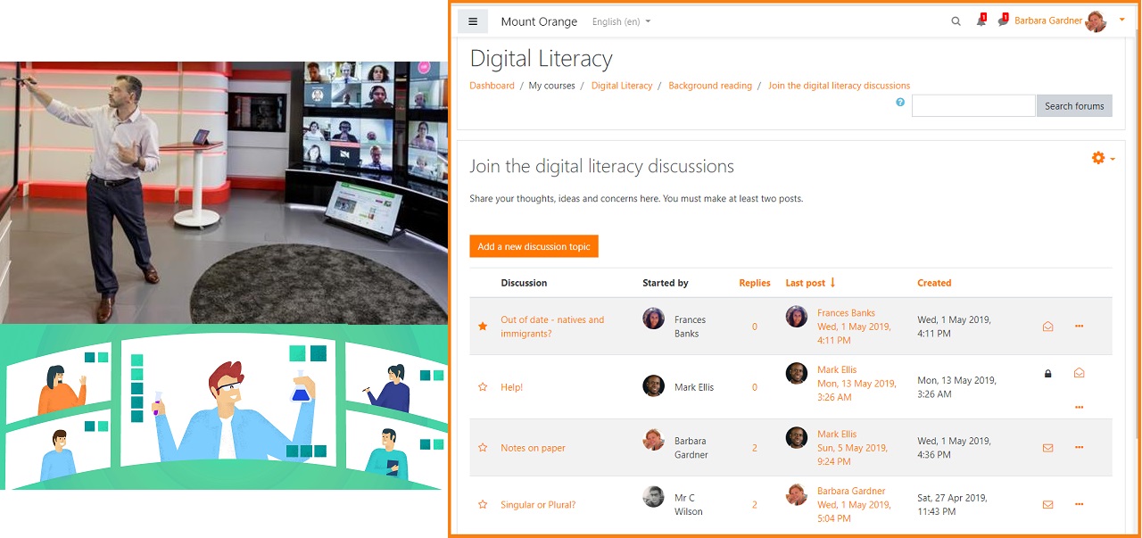 En este tipo de interacción, el maestro tiene el papel particularmente importante del moderador que guía el proceso de aprendizaje y apoya las actividades y discusiones grupales. Ellos se logra usando un LMS o Sistema de Gestión de Aprendizaje soportado en un hosting. Para ello nuestro software como servicio de aula virtual, E learning, plataforma LMS será una plataforma y herramienta colaborativa para su organización.